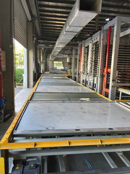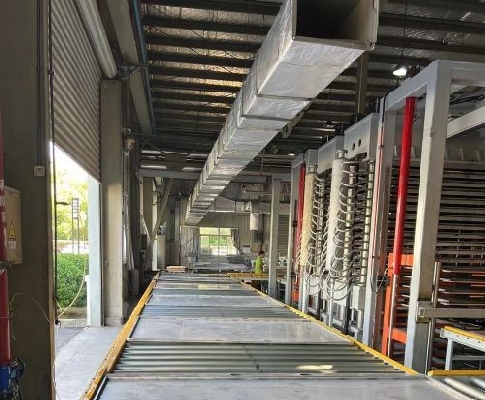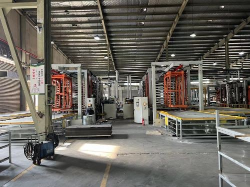 主机,双缸快慢速形式,热板四角导向,流转线部分,全自动控制,光电检测保护,全线除铺料位设置启动按钮外,其余全部自动识别有无料后运行压机升降,加热排水,料架进出料,输送线传送料。全线带故障报警功能。输送线部设置预存料程序。